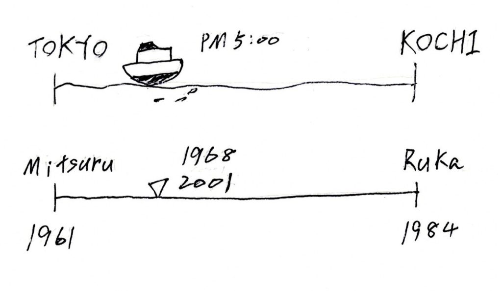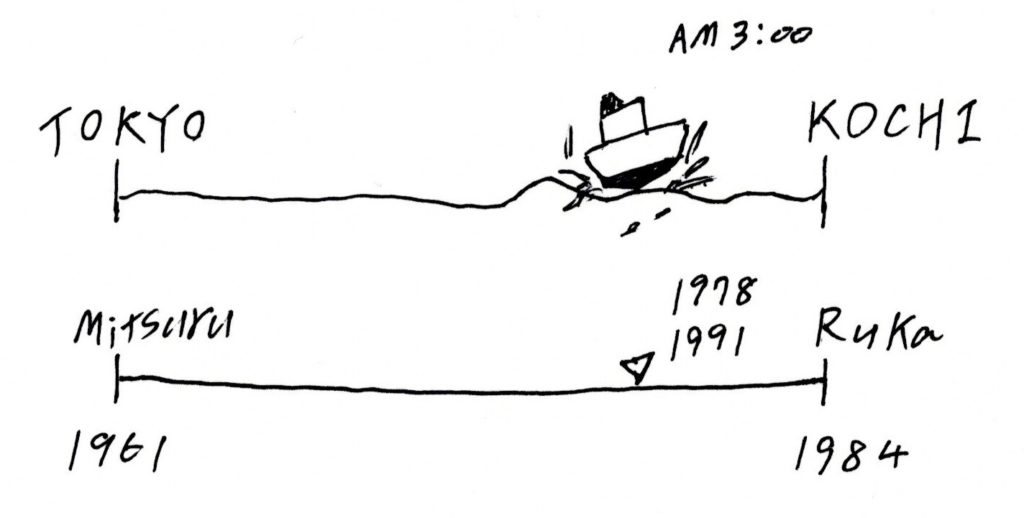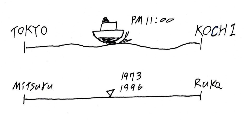 東京・高知間に客船が運航しはじめたのは1973年から、高知港で行われた就航式の様子も、十二才の僕の日記にしっかりと記述されている。だとすれば、あのころに見た景色、ルカと名乗る女性に手を引かれて、隣同士の布団で眠った幼いあの日の記憶と結びつかない。